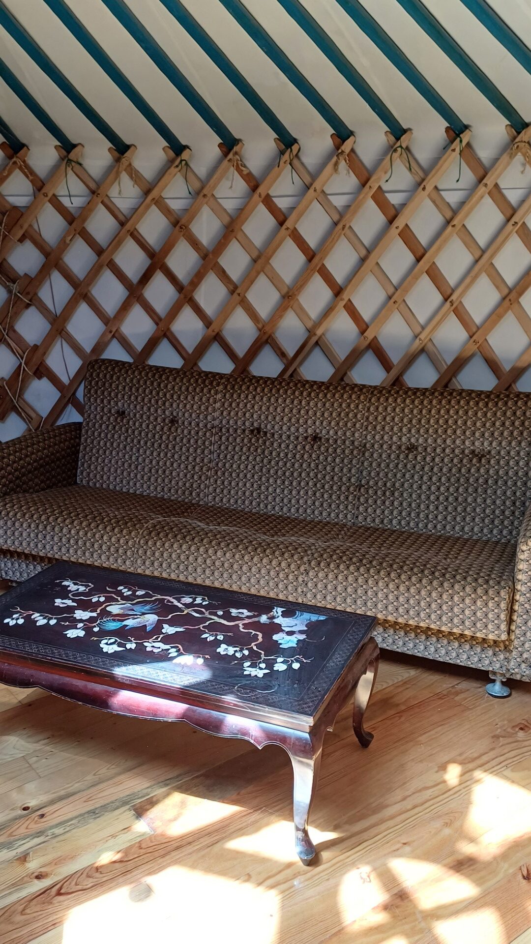 Blueberry Yurt: Similar to the Olive Yurt, the Blueberry Yurt offers a spacious retreat adorned with hand-painted elements on the interior beams. Set amidst a private garden with views of olive and fruit trees, this yurt accommodates up to 4 guests. Enjoy the luxury of your own private bathroom with a shower and separate toilet just steps away from your abode.
